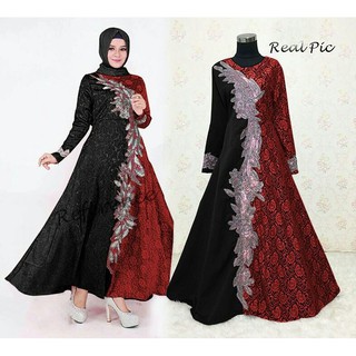 Ready Baju Gamis Pesta Gamis Brokat Brukat Kombinasi Polos Muslim