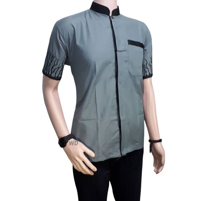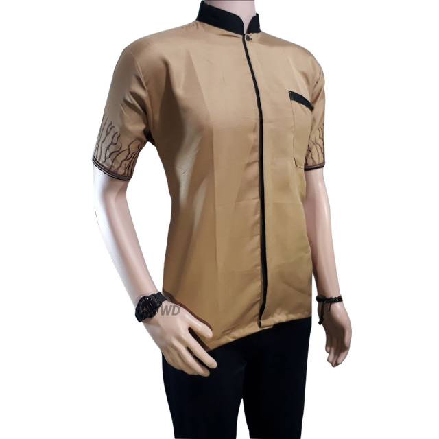 Baju Koko Batik Kombinasi Polos Lengan Panjang Dan Pendek