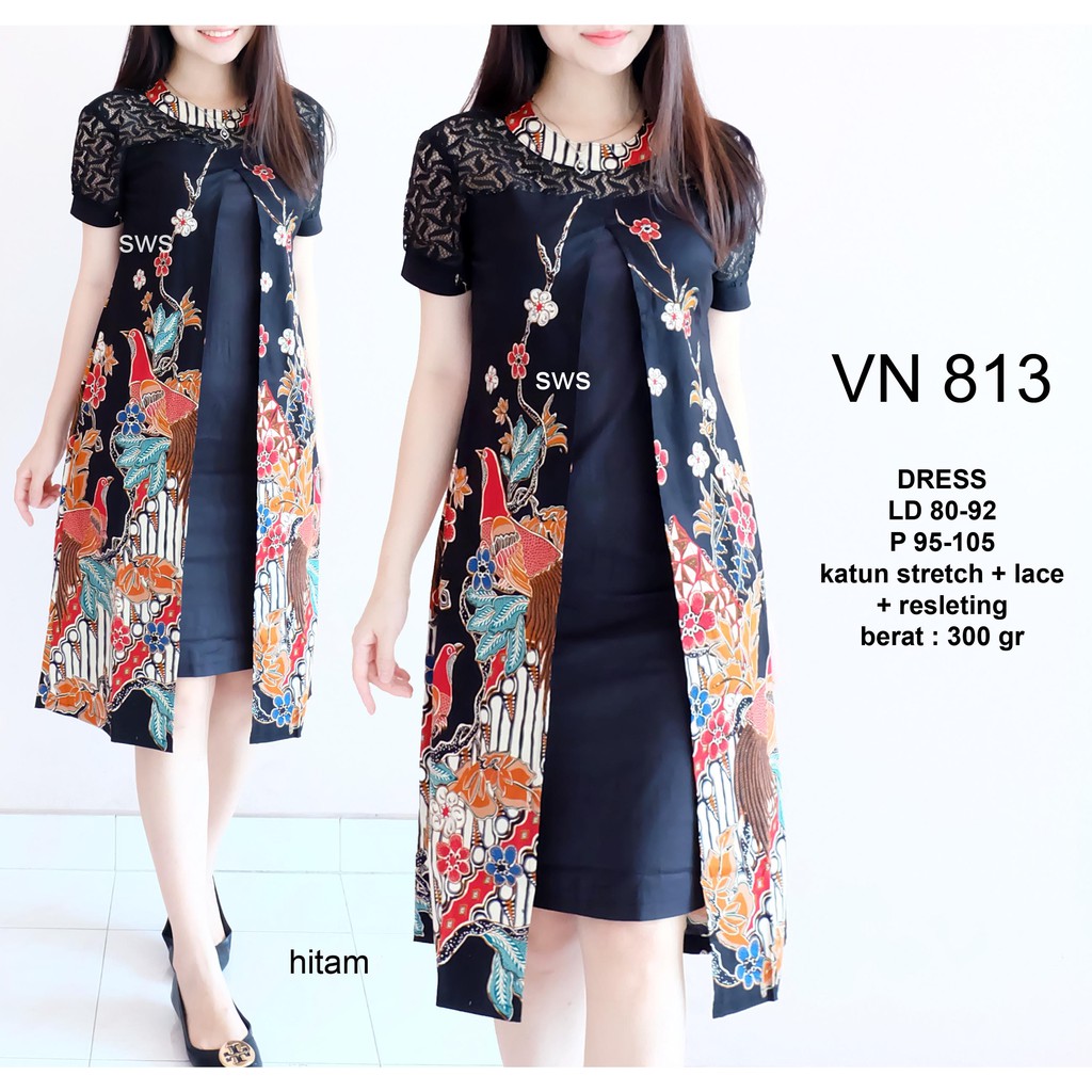 Sevn813 Dress Batik Etnik Dress Batik Brukat Lace Midi Kantor Murah