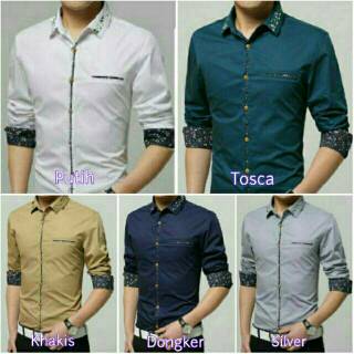 Baju Kemeja Pria Lengan Panjang Keren Model Terbaru Kombinasi Ryn