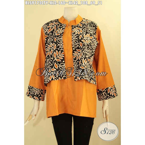 Model Baju Blouse Wanita Terbaru Kombinasi Batik Solo Dan Kain Polos Toyobo Size Xl Bls 9173 Cty
