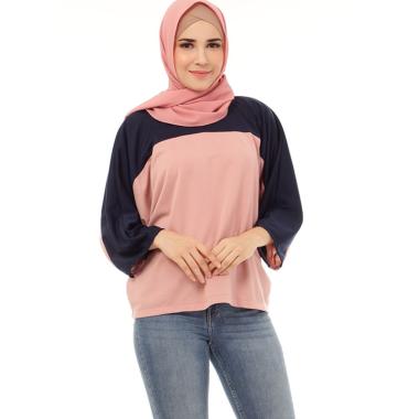 Mybamus Fashion Muslim Atasan Muslim Wanita Blouse Muslim Wanita Qwena Mix Colour Batwings Navy Dusty M14050d R44s6