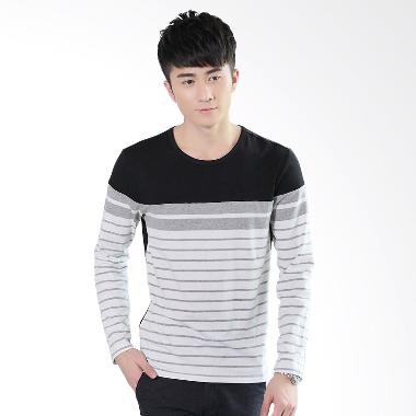 Cek Harga Musim Panas Lengan Pendek Baju Kaos Pria Motif Garis Model