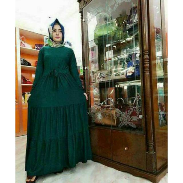 Jual Premium Terlaris Baju Gamis Polos Hijau Botol Gamis Remaja