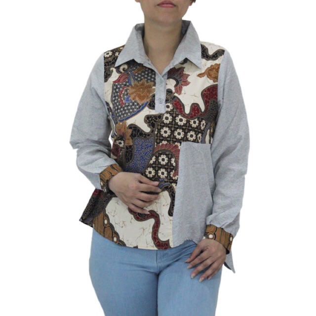 Baju Atasan Batik Blouse Wanita Kombinasi Polos Untuk
