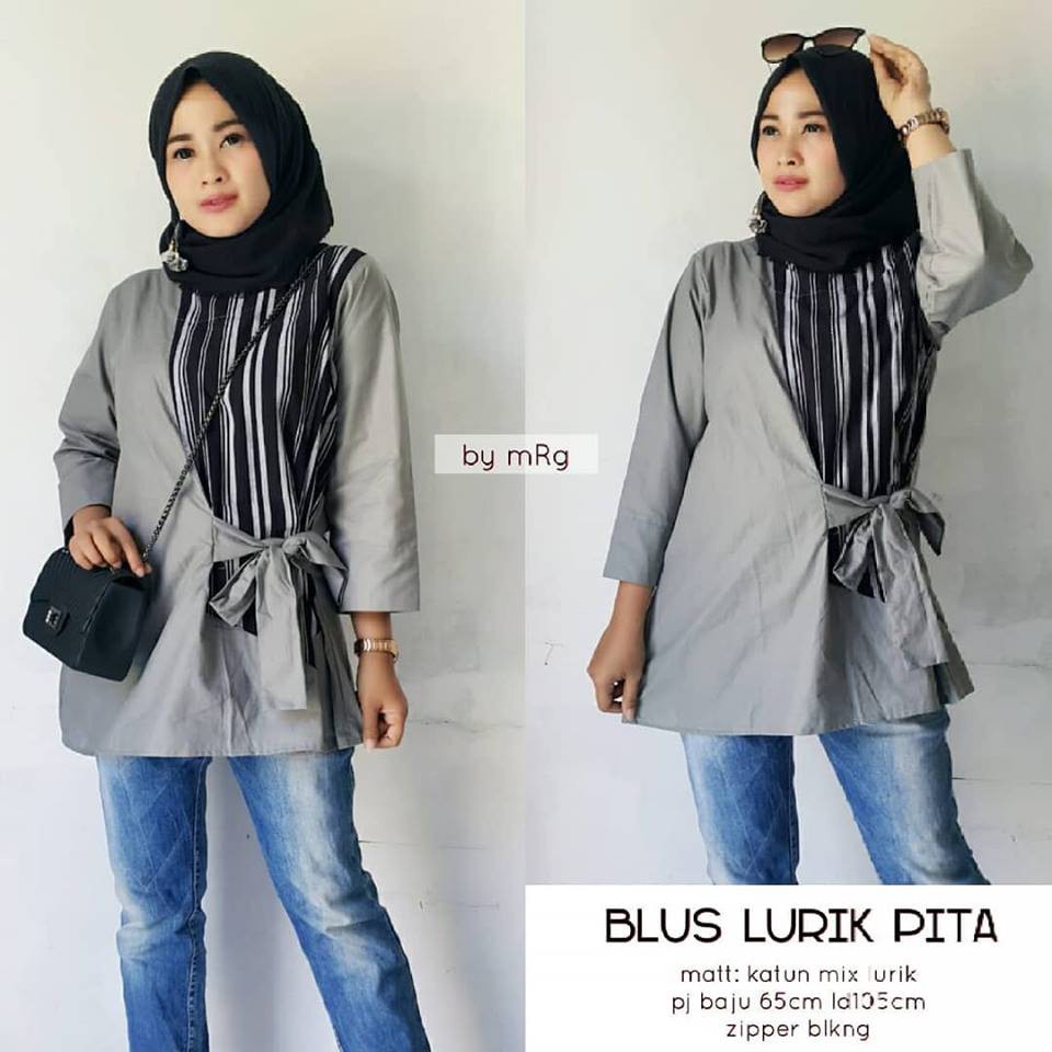 Blus Lurik Pita Blus Kombinasi Lurik Dan Polos Atasan Batik Murah Blus Batik Wanita Kerja