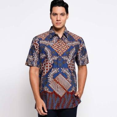 Danar Hadi Batik Ceplok Pesagen Kemeja Lengan Pendek Pria Blue 78 0419 Cppg4