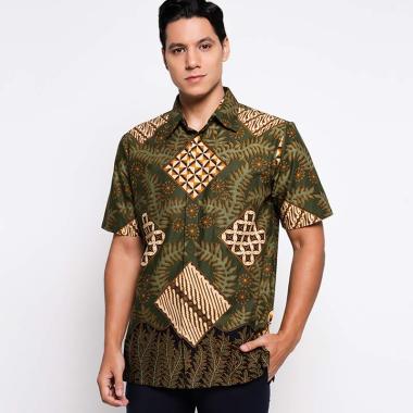 Danar Hadi Batik Ceplok Pesagen Kemeja Lengan Pendek Pria Green 78 0419 Cppg2