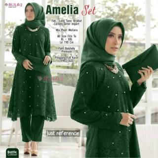 Amelia Set Muslimah Wanita Brukat Murah Setelan Tunik Brukat Celana Baju Pesta Baju Lebaran Murah