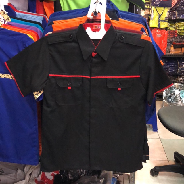Baju Seragam Kemeja Kerja Outsourcing Swasta Ob Cleaning Service Drill Hitam Merah