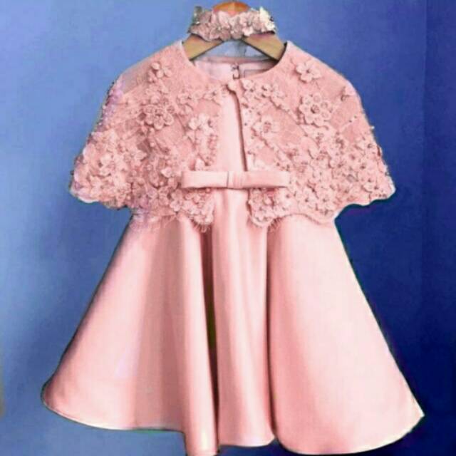 30 Gaun Brokat Anak Warna Pastel Biru Pink Putih Dan
