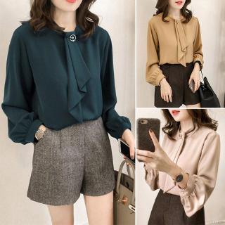 2018 Model Baru Gaya Korea Kemeja Sifon Lengan Panjang Ukuran Besar Baju Wanita Membentuk Tubuh Atasan Netral Restonic Bawahan Sifon Kemeja