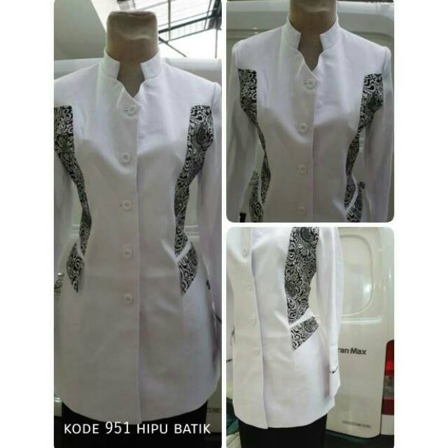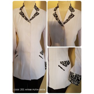 Blazer Atasan Stelan Baju Putih Kombinasi Batik Hitam Murah Kantor Guru Bagus Adem Murah