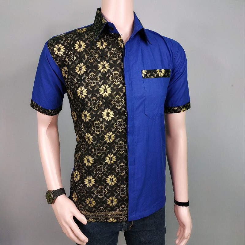 Model Baju Batik Pria Kombinasi Lengan Pendek Terbaru Ib