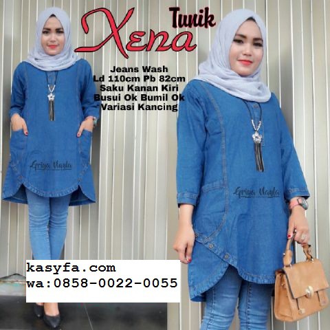 Diara Plo Jumbo Jeans Bahan Jeans Wash Ori Baju Tunik Wanita