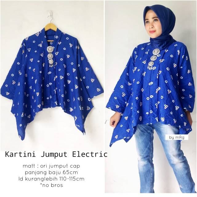Kartini Jumputan Handmade Biru Elektrik Atasan Batik Kebaya Kartini Seragam Baju Batik Kerja