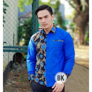 Baju Batik Pria Slim Fit Kombinasi Lengan Panjang Cb259 Berkualitas
