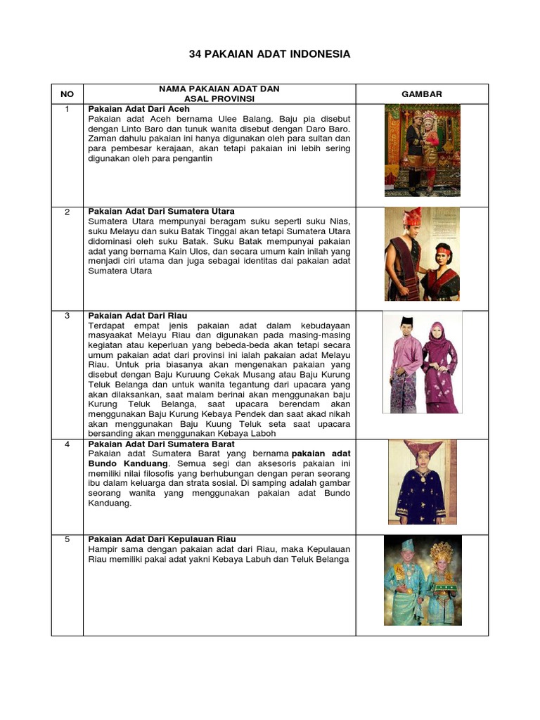 Daftar Lengkap Nama Gambar Dan Asal Pakaian Adat Di Indonesia