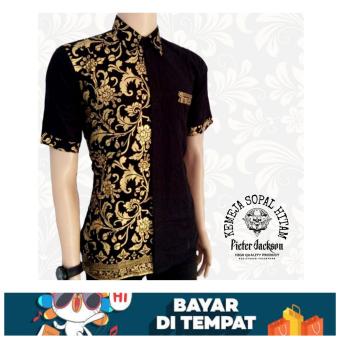 Jual Kemeja Batik Pria Pendek Black Floral Print Keren Gaul