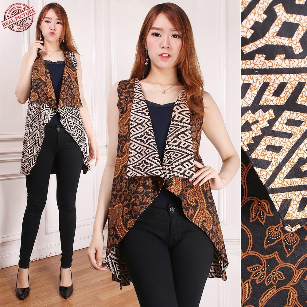 Batik Distro Ba9138 Model Rompi Blouse Coklat