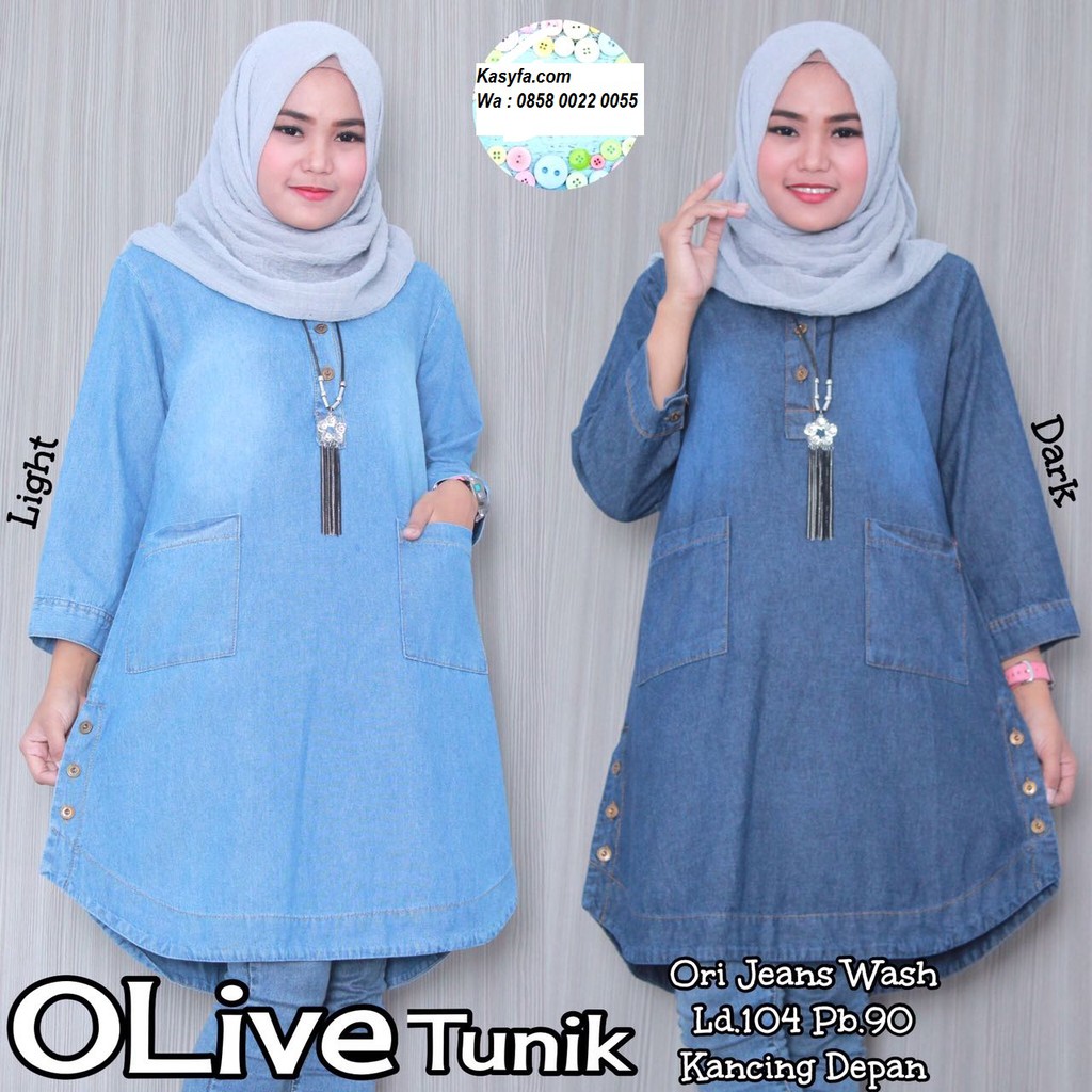 Denim Blouse Muslim Baju Atasan Wanita Jeans Tunik Jual Baju