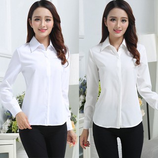 Atasan Blus Lengan Panjang Model Slim Bahan Sifon Warna Putih