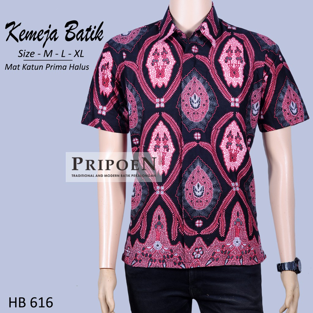 Pripoen Batik Hb616 Kemeja Batik Pria Pink Hitam