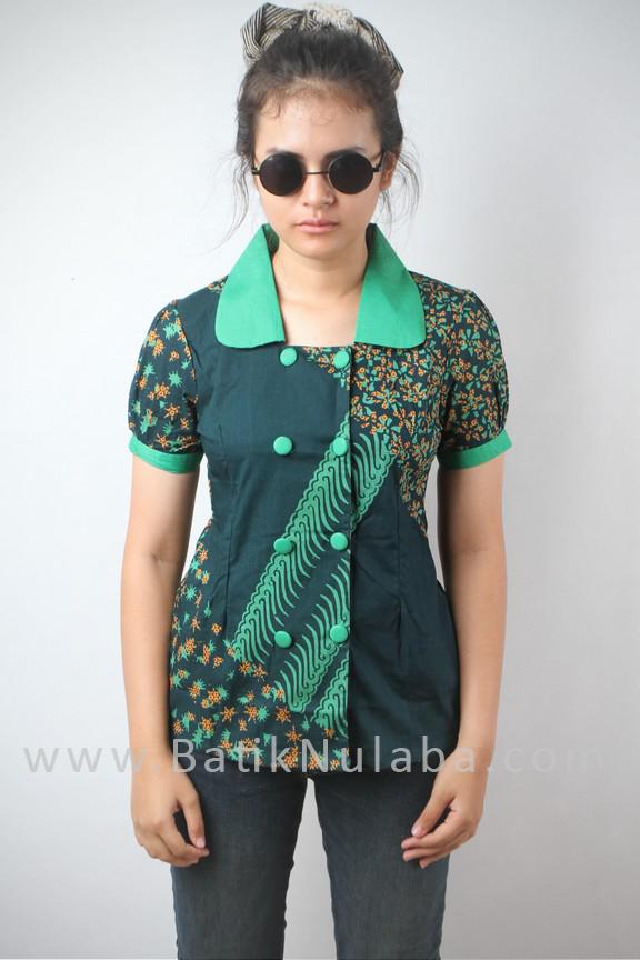 Jual Model Baju Batik Modern Wanita Blus Lurik Batik Hijau