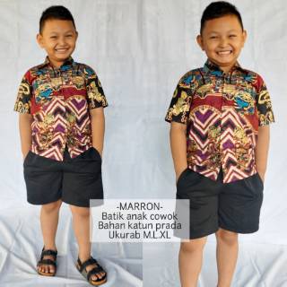 Jual Baju Batik Anak Cowok Size M Hem Batik Motif Bulu Merak Proses