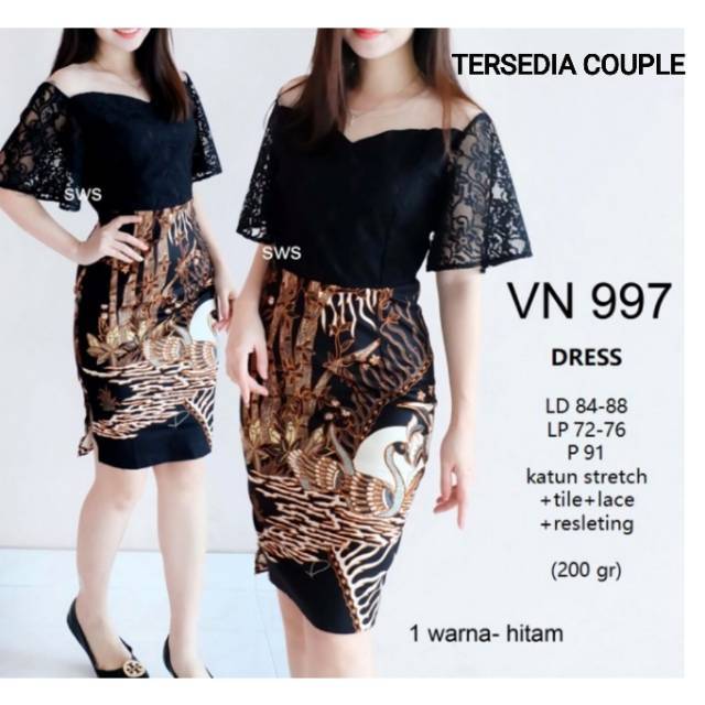 Dress Batik Katun Kombi Lace Brukat Batik Natal Murah Dress Batik Party Vn 977 Batik Vn 997